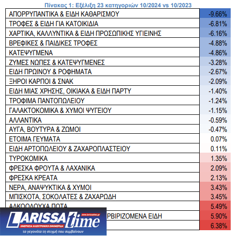 Από τις 23 κατηγορίες που εξετάζονται οι 13 κατέγραψαν μείωση και οι 10 αύξηση.