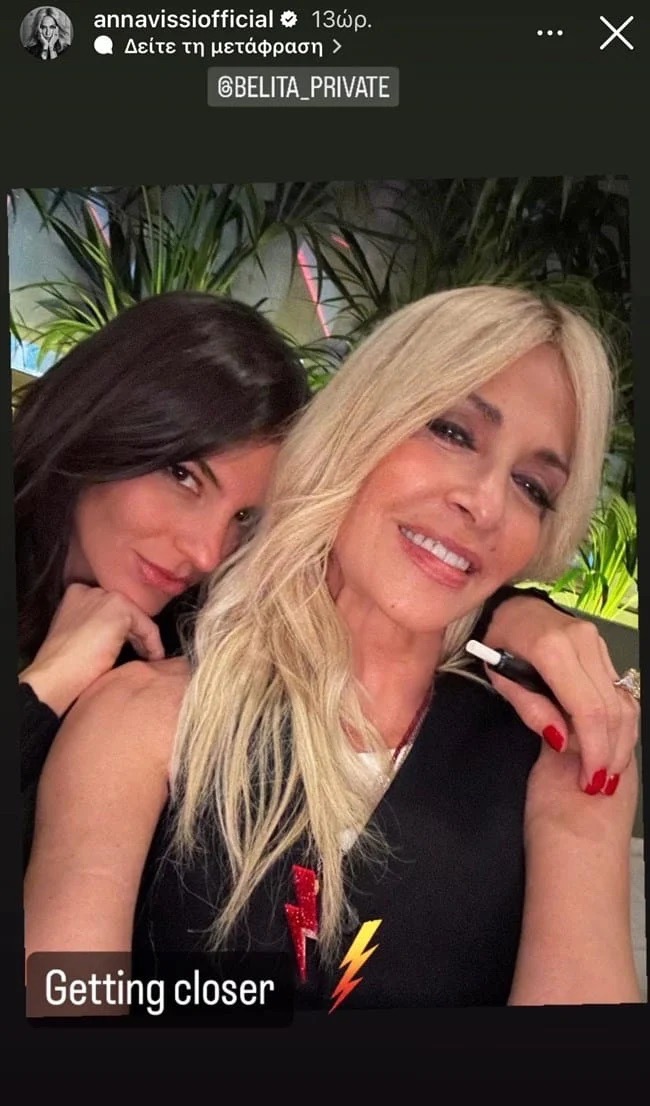 “Πλησιάζοντας”, έγραψε η απόλυτη ελληνίδα σταρ στη λεζάντα της φωτογραφίας. Η Δήμητρα Κούστα, που διαχειρίζεται ιδιωτικά τα social media της, εμφανίζεται με μια κομψή μαύρη δημιουργία, κρατώντας στην αγκαλιά της την Άννα Βίσση, ενώ φαίνεται ξεκάθαρα το εντυπωσιακό διαμαντένιο δαχτυλίδι της.