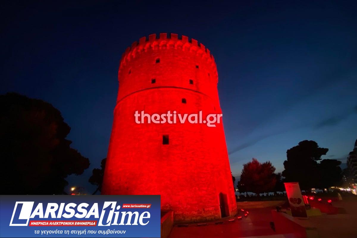 Στα κόκκινα φωταγωγήθηκε το βράδυ της Τετάρτης (8/5) ο Λευκός Πύργος, στη Θεσσαλονίκη. Η δράση έγινε με αφορμή την Παγκόσμια Ημέρα Θαλασσαιμίας (Μεσογειακής Αναιμίας) που έχει καθιερωθεί από τον Παγκόσμιο Οργανισμό Υγείας και τιμάται στις 8 Μαΐου.
