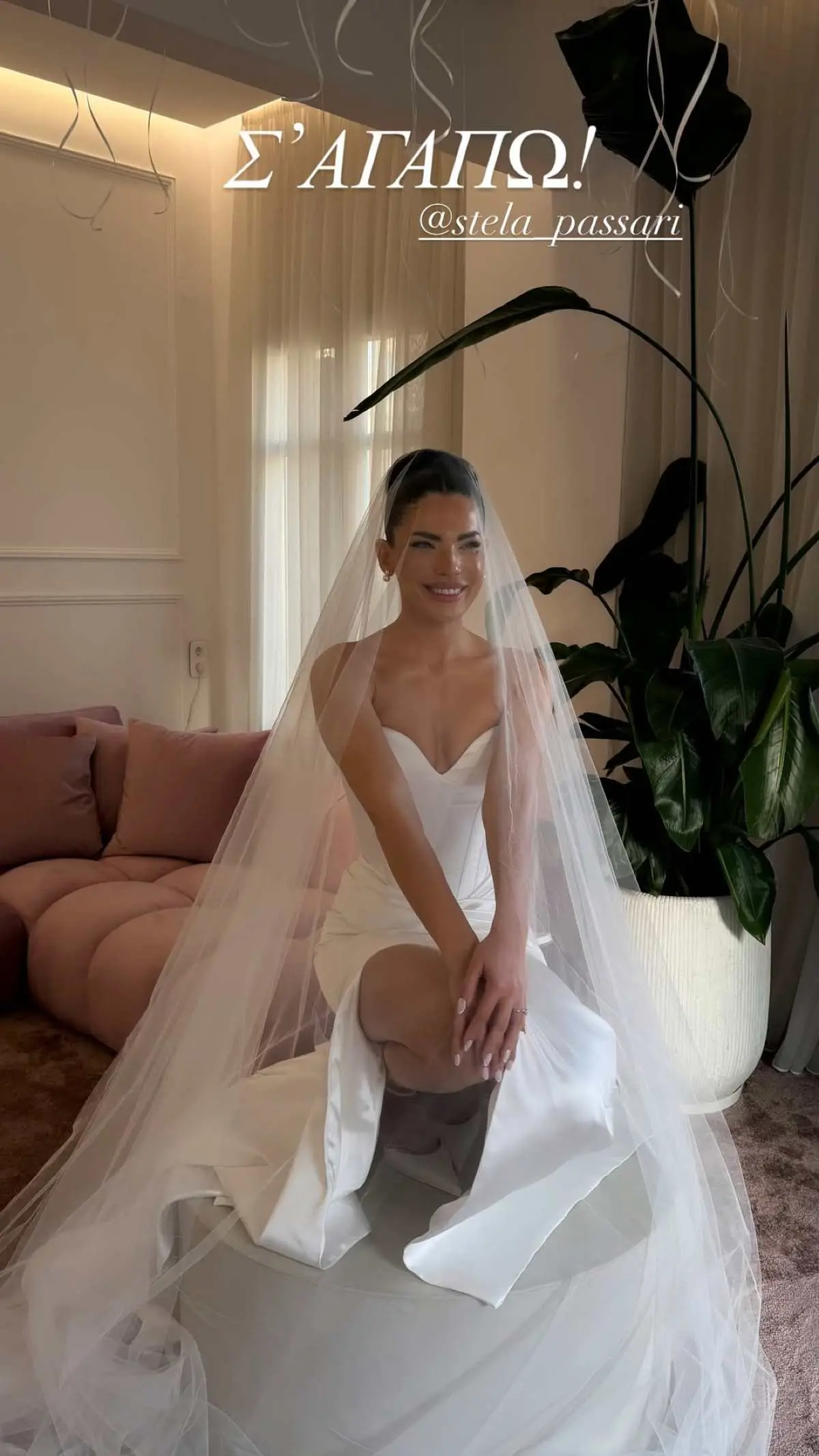 Η άφιξη της νύφης ήταν άκρως συγκινητική, με τους φίλους της και την οικογένειά της να την περιμένουν έξω από την εκκλησία. Η Στέλλα Πάσσαρη έλαμπε από ευτυχία αντικρίζοντάς τους, ενώ, το νυφικό της και το μακρύ πέπλο έκλεψαν την παράσταση. Πρόκειται για ένα στράπλες μακρύ φόρεμα που την κολακεύει απίστευτα χωρίς υπερβολές το οποίο αποπνέει κομψότητα και ρομαντισμό.