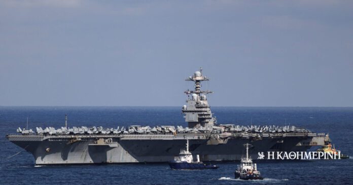 Το πυρηνοκίνητο αμερικανικό αεροπλανοφόρο USS Gerald R. Ford, το μεγαλύτερο πολεμικό πλοίο παγκοσμίως έφτασε σήμερα στη Σούδα, όπου θα παραμείνει για τέσσερις ημέρες προκειμένου να ανεφοδιαστεί με καύσιμα, πυρομαχικά και προμήθειες.