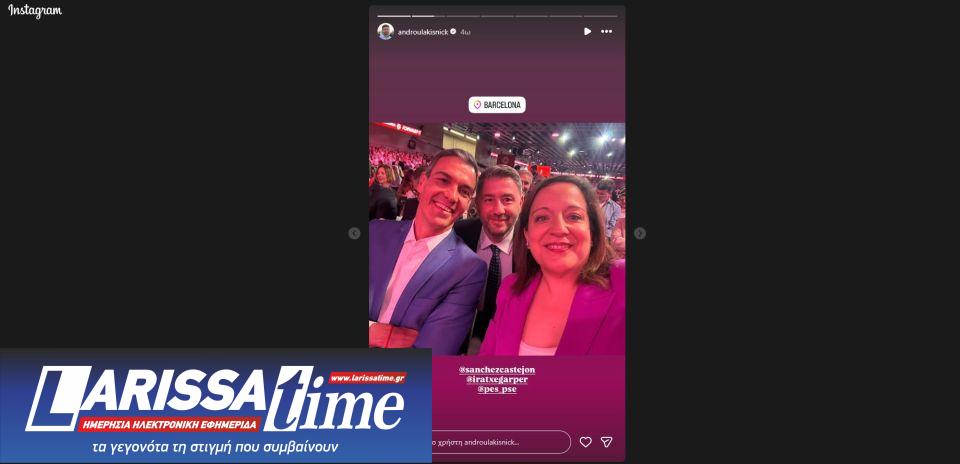 Μοιράστηκε μάλιστα μια selfie με τον Ισπανό Πρωθυπουργό και την Ιράτσε Γκαρσία, επικεφαλής της ευρωομάδας των Σοσιαλιστών.