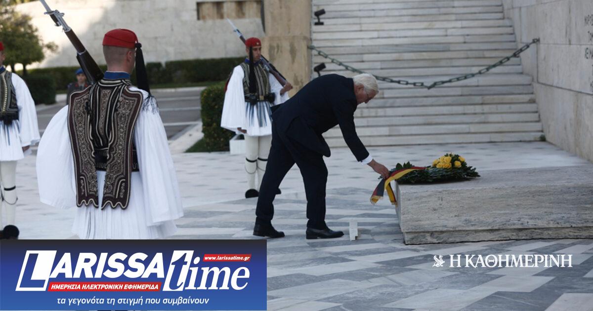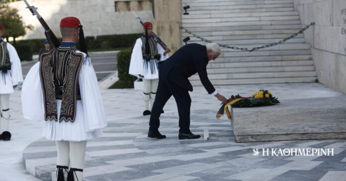 Με κατάθεση στεφάνου στο Μνημείο του Αγνώστου Στρατιώτη ξεκίνησε η επίσημη επίσκεψη στην Αθήνα του προέδρου της Γερμανίας, Φρανκ-Βάλτερ Σταϊνμάγερ, μετά από πρόσκληση της Προέδρου της Δημοκρατίας Κατερίνας Σακελλαροπούλου.