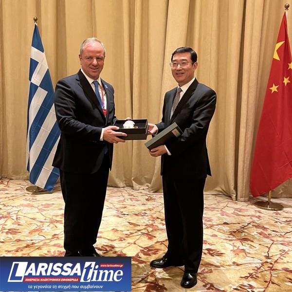 Στο περιθώριο της συμμετοχής του στον 7ο Διάλογο μεταξύ της Κίνας και των χωρών Κεντρικής και Ανατολικής Ευρώπης ο Έλληνας Υφυπουργός πραγματοποίησε διμερή συνάντηση με τον Υφυπουργό και μέλος της Επιτροπής του CPC της Γενικής Διοίκησης Τελωνείων της Λαϊκής Δημοκρατίας της Κίνας, κ. Zhao Zenglian, παρουσία του Πρέσβη της Ελλάδας στην Κίνα, Δρ. Ευγενίου Καλπύρη, κατά την οποία συζητήθηκαν θέματα με έμφαση στην ενίσχυση και διευκόλυνση του διμερούς εμπορίου μεταξύ Ελλάδας και Κίνας στον αγροδιατροφικό τομέα.