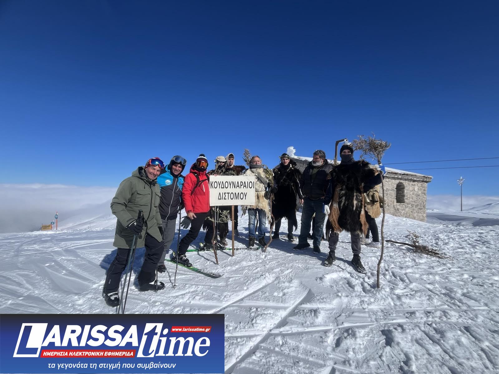 Με τον εκκωφαντικό χτύπο των τεράστιων χάλκινων κουδουνιών, την αθυρόστομη σάτιρά τους και τα πικάντικα, επίκαιρα, στιχάκια- μια διονυσιακή παράδοση που στο Δίστομο Βοιωτίας επιβιώνει 30 αιώνες – ξάφνιασαν ευχάριστα τους σκιέρ και τους επισκέπτες του ορεινού όγκου του τοπικού Δήμου Διστόμου – Αράχωβας – Αντίκυρας!