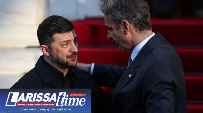 Στην πρεσβεία είχε φτάσει λίγο νωρίτερα ο Ουκρανός πρόεδρος Ζελένσκι, λίγο αφότου ολοκλήρωσε τη σειρά των επαφών που είχε με τον Πρόεδρο της Δημοκρατίας, Κωνσταντίνο Τασούλα, με τον πρωθυπουργό, Κυριάκο Μητσοτάκη και με τον πρόεδρο της Βουλής, Νικήτα Κακλαμάνη.