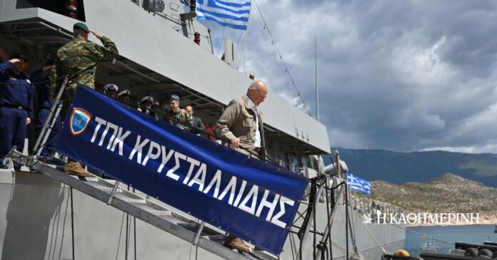 Ο υπουργός Εθνικής Aμυνας επισκέφτηκε την πυραυλάκατο «Κρυσταλλίδης» στο λιμάνι της Μεγίστης, όπου ευχήθηκε στον κυβερνήτη πλωτάρχη Δημήτριο Αγγελή και στο πλήρωμα χρόνια πολλά για το Πάσχα και τους ευχαρίστησε από καρδιάς για την υπηρεσία τους στην πατρίδα.