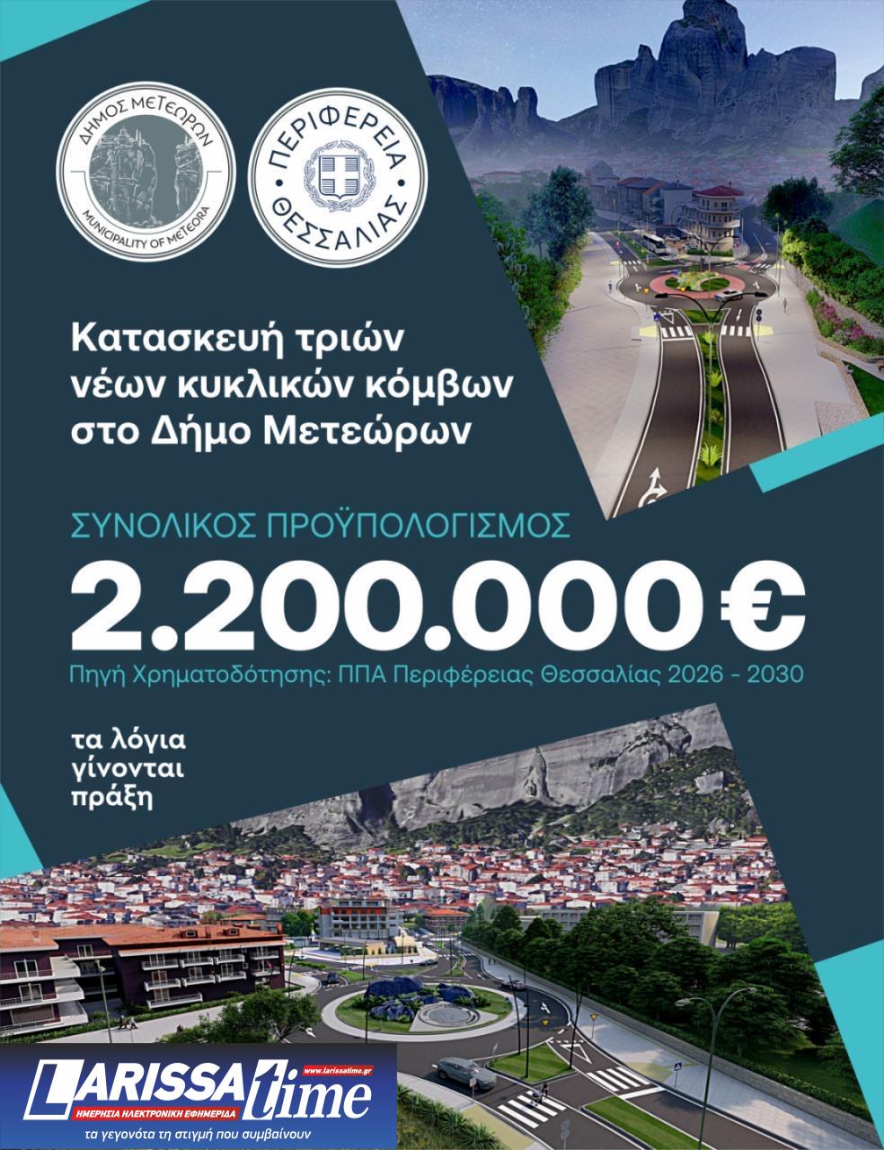 Στην τελική ευθεία εισέρχεται η υλοποίηση ενός σημαντικού έργου υποδομής για την Καλαμπάκα, καθώς ξεκινά η κατασκευή των τριών κυκλικών κόμβων με χρηματοδότηση της Περιφέρειας Θεσσαλίας προϋπολογισμού 2. 200.000 ευρώ.