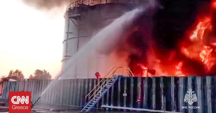 Στις φλόγες έχουν τυλιχθεί πετρελαϊκές εγκαταστάσεις στα νότια της Ρωσίας στο Τιχορέτσκ, με τις πυροσβεστικές δυνάμεις να δίνουν μάχη για να την περιορίσουν, σύμφωνα με τις τοπικές αρχές.