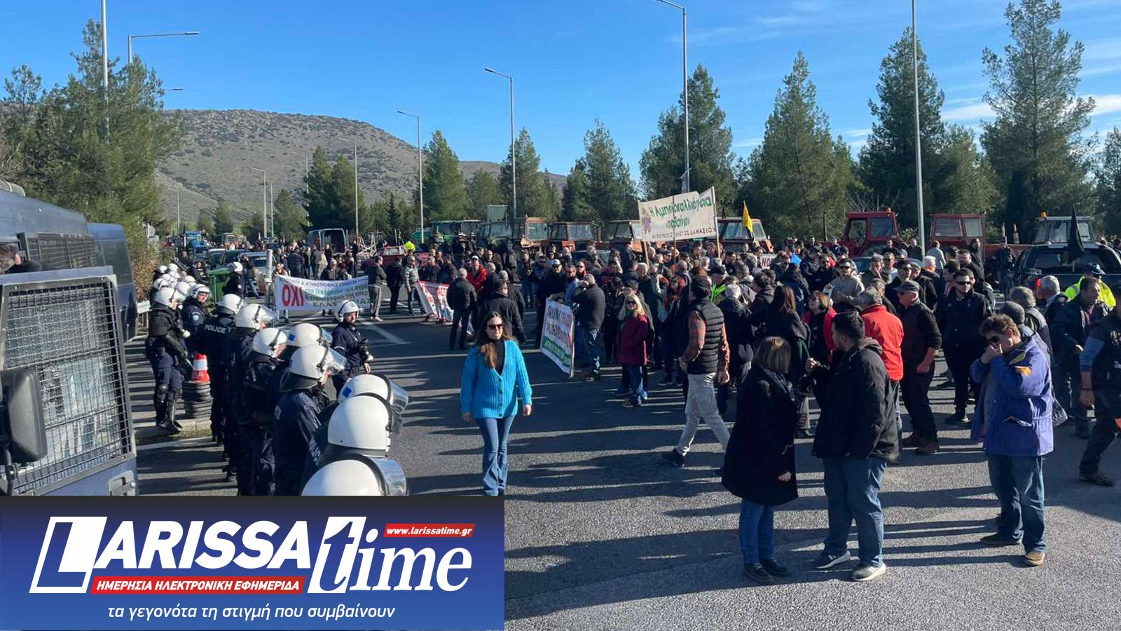 Mε τη μαζική συμμετοχή αγροτών και κτηνοτρόφων από το νομό Λάρισας στήθηκε το μεσημέρι της Πέμπτης το αγροτικό μπλόκο στον κόμβο της Γυρτώνης.