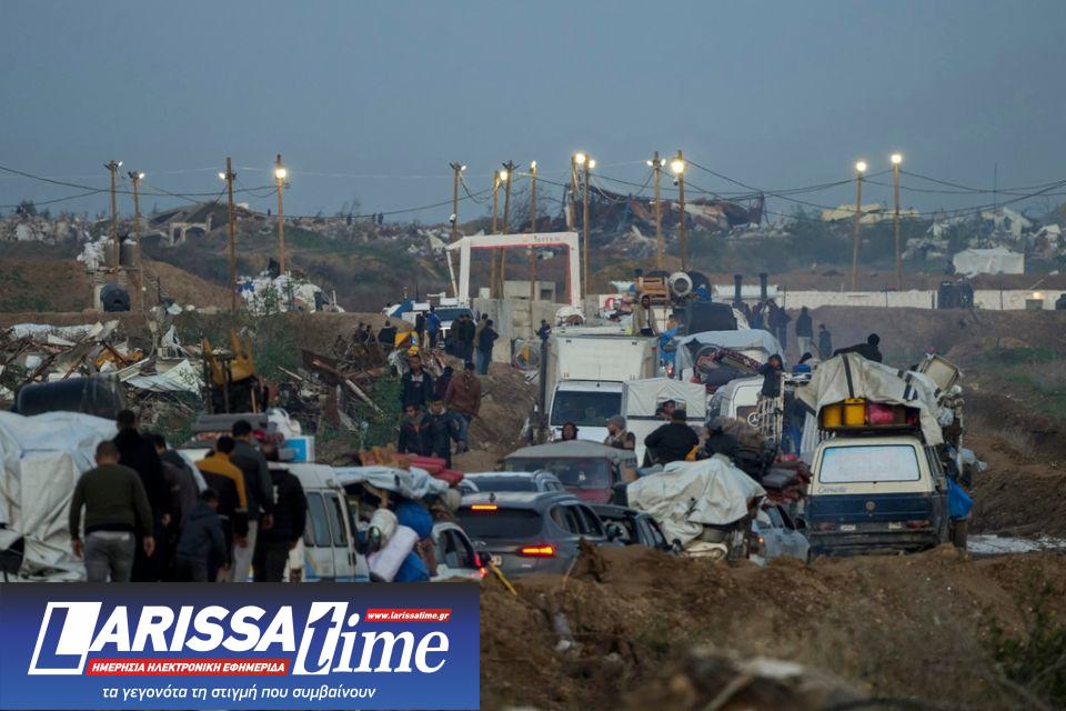 Παλαιστίνιοι περιμένουν να περάσουν τον «διάδρομο Νετζαρίμ» κατευθυνόμενοι στη Βόρεια Γάζα.