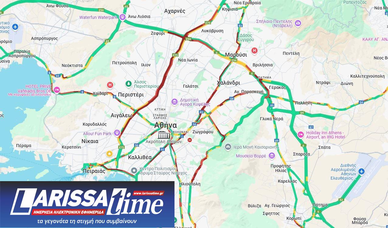 Το αδιαχώρητο επικρατεί στην έξοδο της Εθνικής Οδού Αθηνών- Κορίνθου, στα δύο ρεύματα της Αθηνών- Λαμίας, αλλά και στην άνοδο και την κάθοδο του Κηφισού.