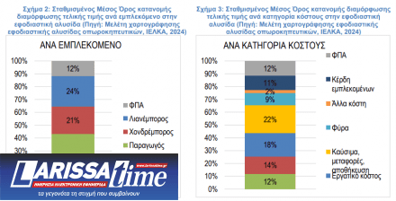 Στο σχήμα 2 απεικονίζεται η ανάλυση κόστους (και διαμόρφωσης τελικής τιμής) ανά εμπλεκόμενο και στο σχήμα 3 ανά κατηγορία κόστους.