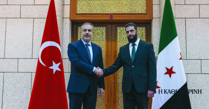Ισχυρό φρένο στις προσπάθειες να αναζητηθούν λύσεις στα βαθιά νερά των ελληνοτουρκικών σχέσεων βάζει εκ των πραγμάτων το εξαιρετικά ρευστό τοπίο στη Συρία. Βασικός στόχος στην παρούσα φάση παραμένει να διατηρηθεί το θετικό κλίμα στις δύο πλευρές του Αιγαίου, κάτι όμως που εμφανώς καθίσταται ιδιαίτερα δυσχερές μετά και την πρωτοβουλία της Αγκυρας να συντηρεί, και μάλιστα μέσω επίσημων δηλώσεων, τη φιλολογία περί οριοθέτησης ΑΟΖ με τη Δαμασκό. Η Αγκυρα, όπως λέγεται, κινείται πλέον σε μια παράδοξη «ισορροπία». Η μεγάλη επιρροή της στη Συρία και το γεγονός ότι έχει σημαντικά κέρδη από την πτώση του καθεστώτος Ασαντ δεν μπορούν να αμφισβητηθούν. Στον αντίποδα, όπως αναφέρουν γνώστες του διπλωματικού παρασκηνίου, ο Ερντογάν επιχειρεί να εκμεταλλευθεί το θετικό για την Τουρκία μομέντουμ διαρθρώνοντας μια «συναλλακτική» πολιτική, που έχει προκαλέσει αντιδράσεις πρωτίστως στους κόλπους του αραβικού κόσμου, αλλά και στην Ουάσιγκτον και στις Βρυξέλλες. Κυρίως, δε, με τους χειρισμούς του πυροδοτεί έντονο προβληματισμό στο Ισραήλ, τον οποίο η Αθήνα μπορεί να αξιοποιήσει καθώς διατηρεί με το Τελ Αβίβ στρατηγικές σχέσεις.