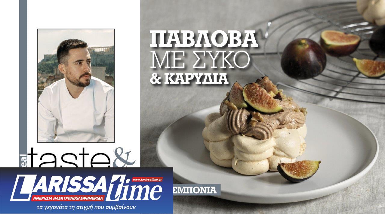 O pastry chef Στέφανος Σμπόνιας δημιουργεί μια πάβλοβα με σύκο και καρύδια, ένα γλυκό γεμάτο φθινοπωρινή θαλπωρή, που τιμά τη λεπτότητα των εποχικών υλικών.