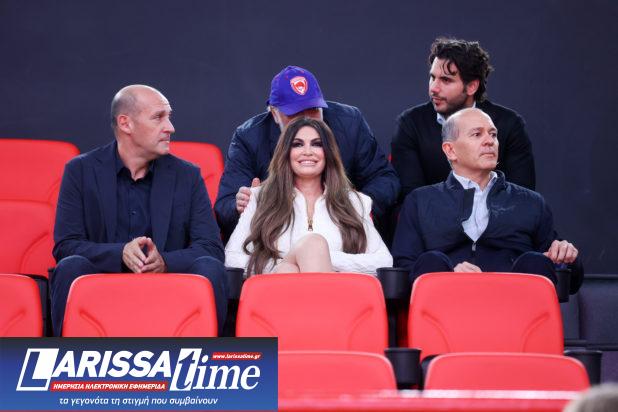 H Κίμπερλι Γκιλφόιλ κάθισε στις εξέδρες των επισήμων ανάμεσα στους ιδιοκτήτες της ΚΑΕ Ολυμπιακός, Παναγιώτη και Γιώργο Αγγελόπουλο.