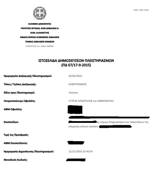 Η τιμή προσφοράς για την μεζονέτα ανέρχεται στα 367.877 ευρώ ενώ στο σφυρί βγαίνει και το πάρκινγκ με τιμή προσφοράς στα 11.132 ευρώ.