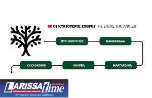 Την εποχή αυτή, µέσα στον Απρίλιο, έχει αρχίσει σε όλες τις περιοχές της κεντρικής χώρας η έκπτυξη της νέας βλάστησης σε µήκος 2-7 εκατοστά, ανάλογα µε το υψόµετρο του ελαιώνα. Οι καιρικές συνθήκες την περίοδο αυτή, στην αρχή της άνοιξης, είναι ασταθείς σε πολλές ελαιοκοµικές περιοχές µε συχνές βροχοπτώσεις, υψηλή υγρασία και σηµαντικές µεταβολές θερµοκρασίας µεταξύ βραδινών και µεσηµεριανών ωρών. Γι’ αυτό οι ελαιοκαλλιεργητές καλούνται να ελέγχουν τα κτήµατά τους, ώστε να επέµβουν έγκαιρα και να αντιµετωπίσουν το κυκλοκόνιο, τονίζουν οι γεωπόνοι του Περιφερειακού Κέντρου Προστασίας Φυτών Βόλου.