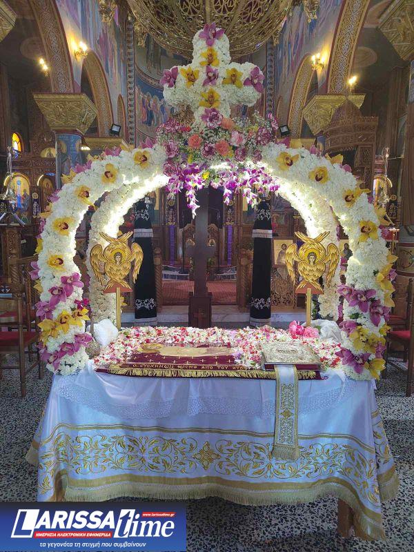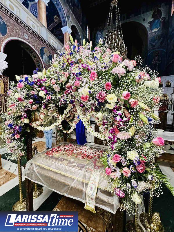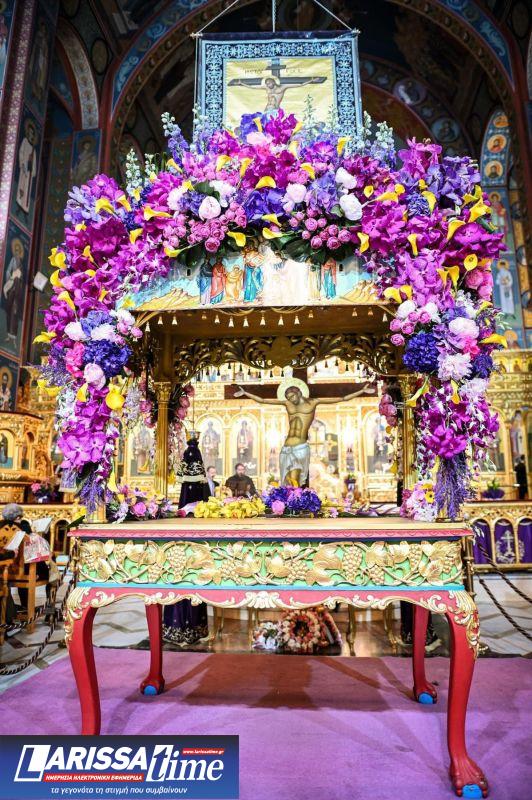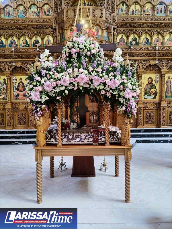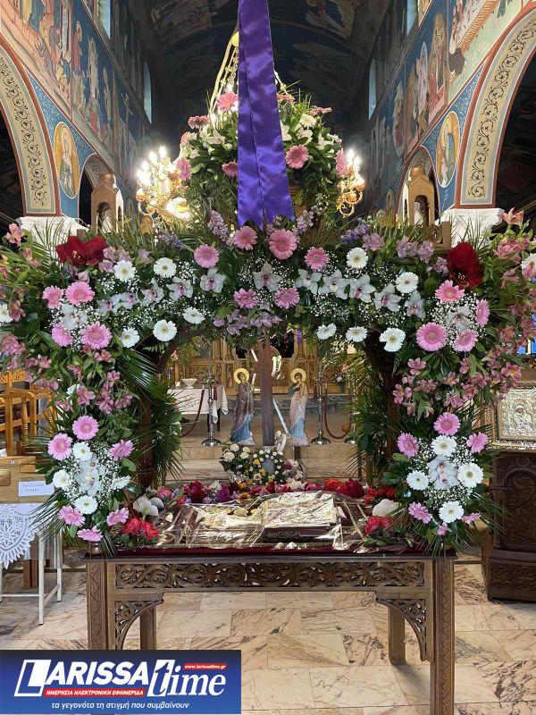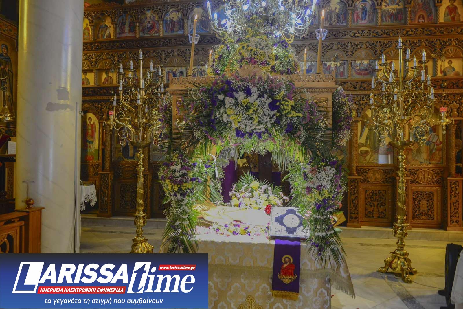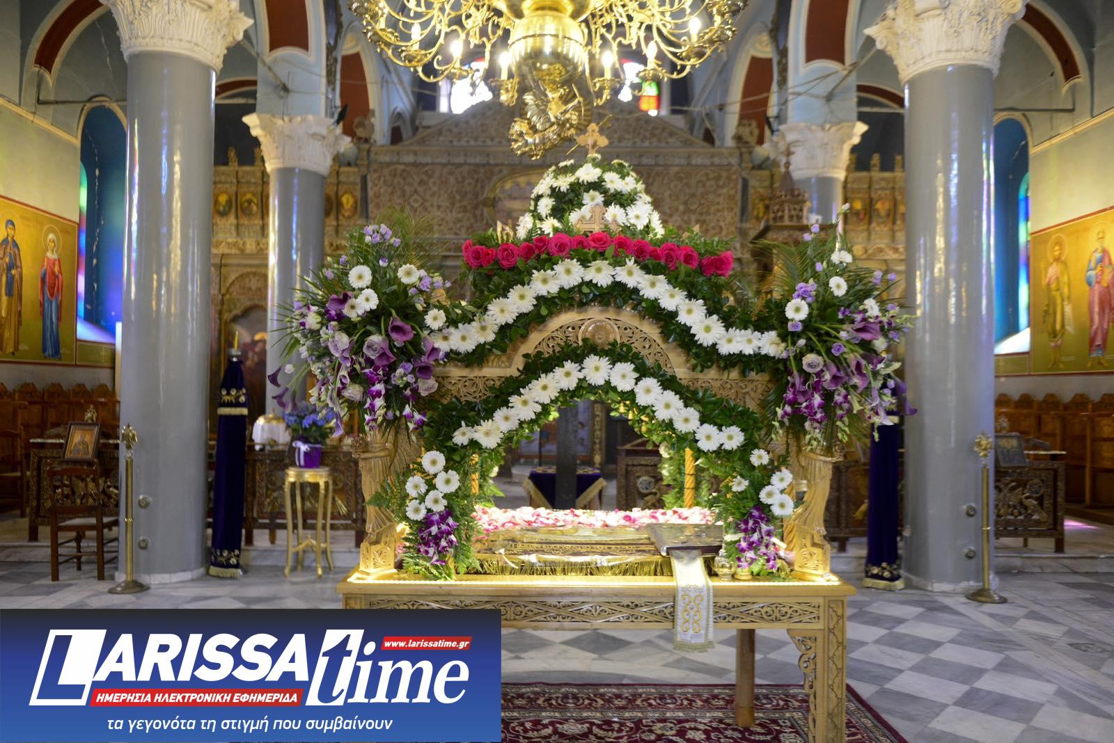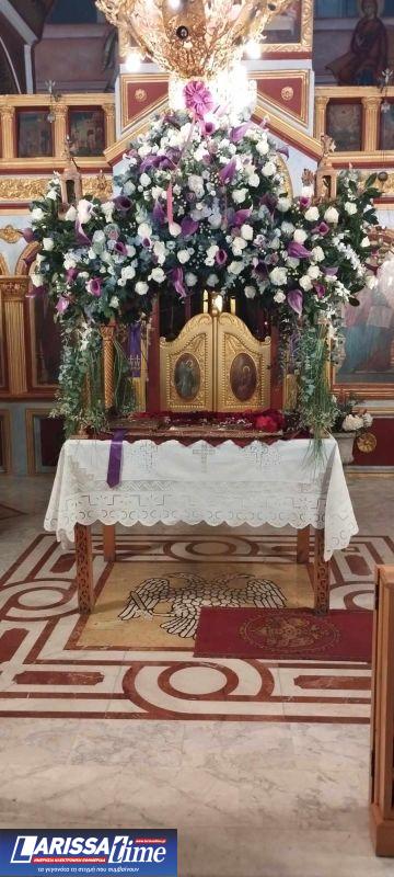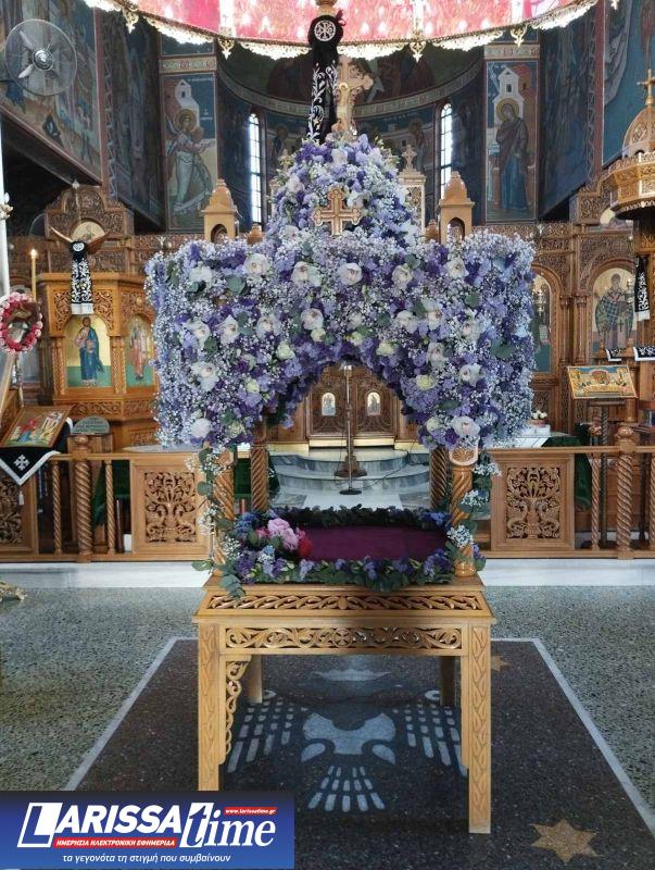 Για ακόμη μία χρονιά, οι Επιτάφιοι στους Ιερούς Ναούς της Λάρισας στολίστηκαν με λουλούδια, τα οποία περιβάλλουν το σώμα του Χριστού.