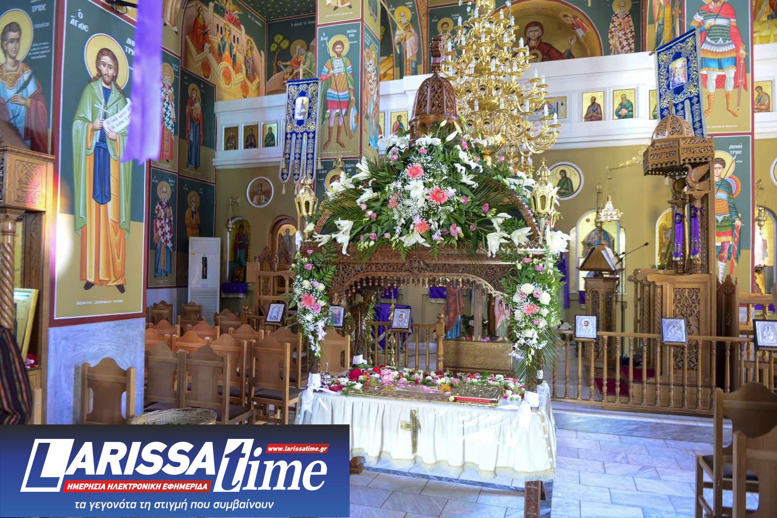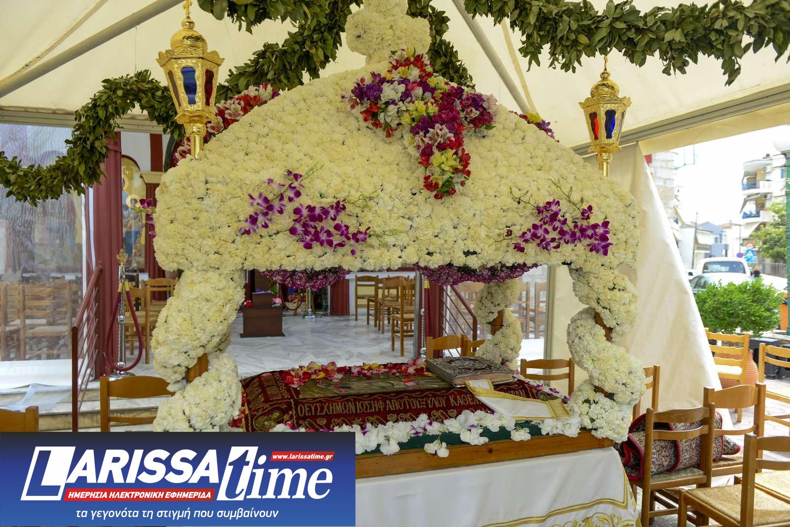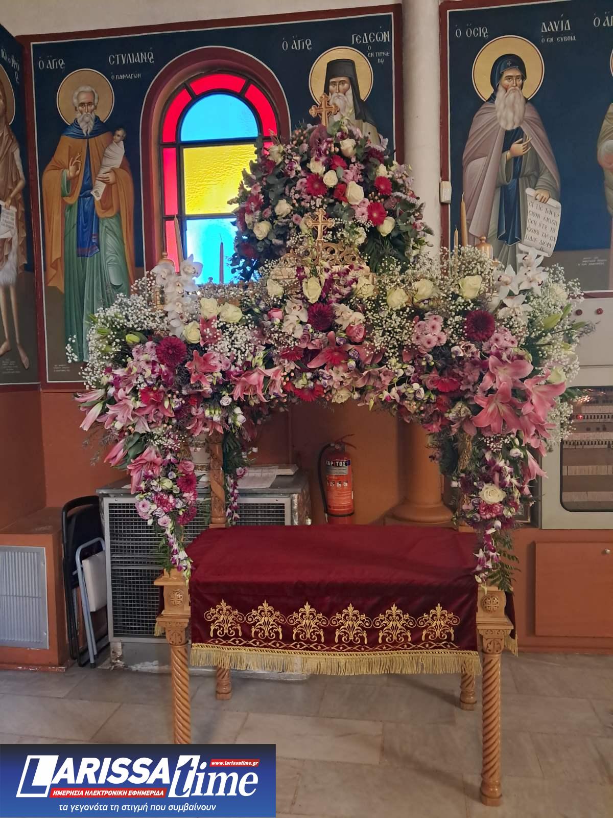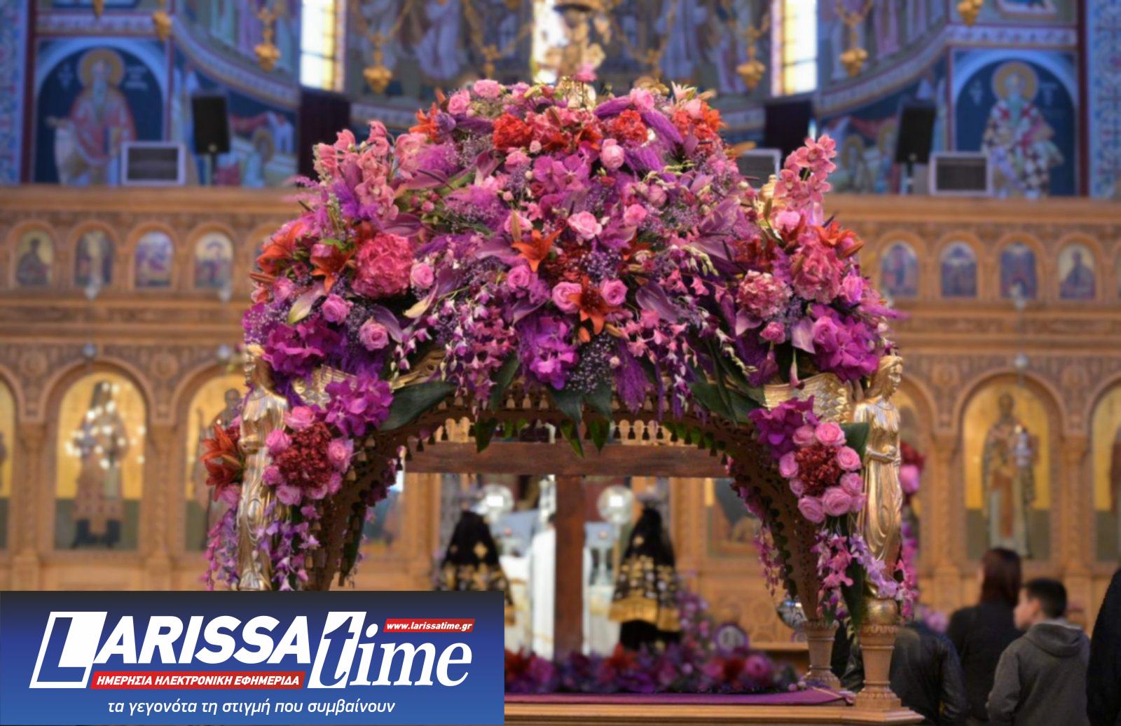 Για ακόμη μία χρονιά, οι Επιτάφιοι στους Ιερούς Ναούς της Λάρισας στολίστηκαν με λουλούδια, τα οποία περιβάλλουν το σώμα του Χριστού.