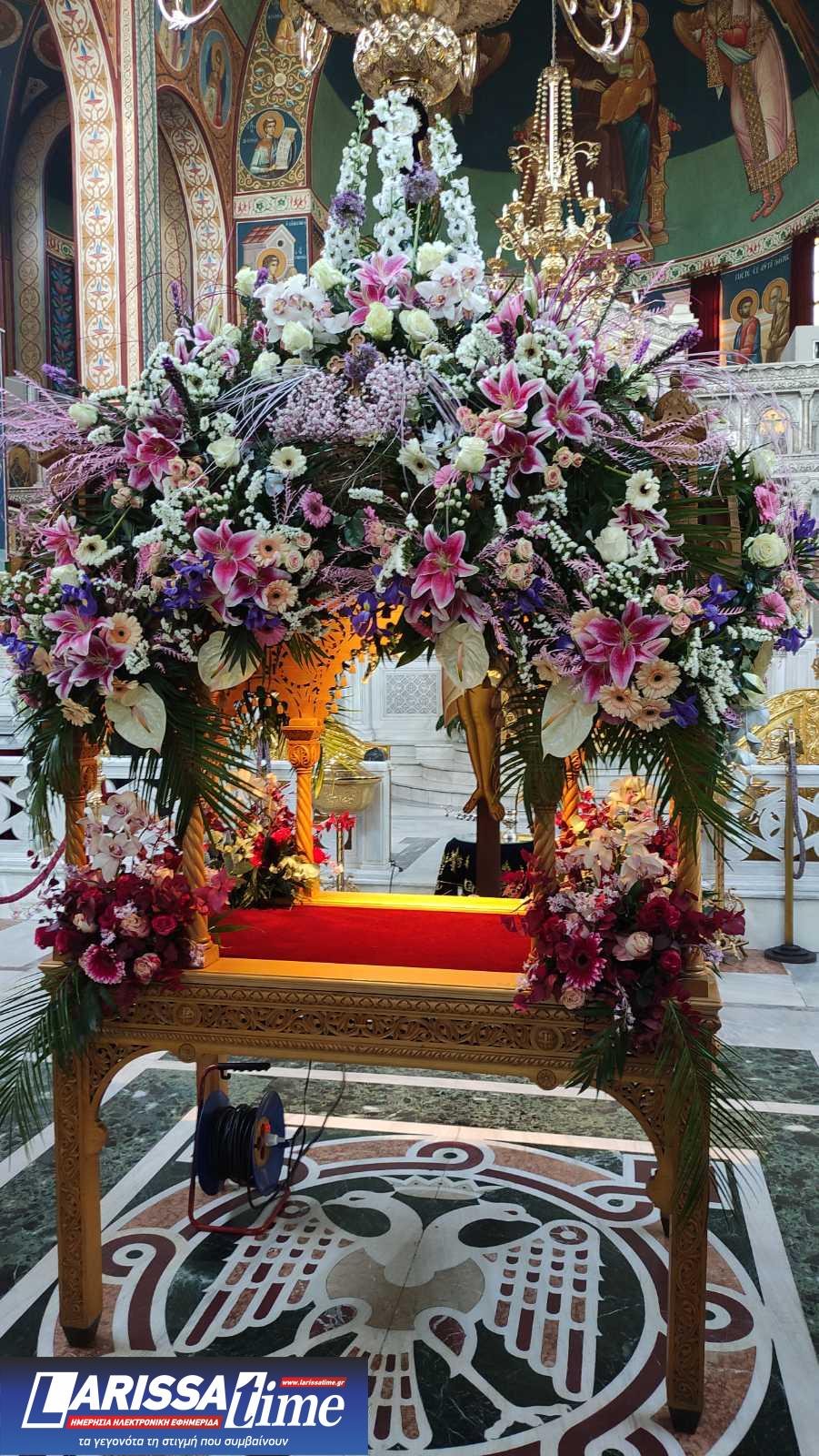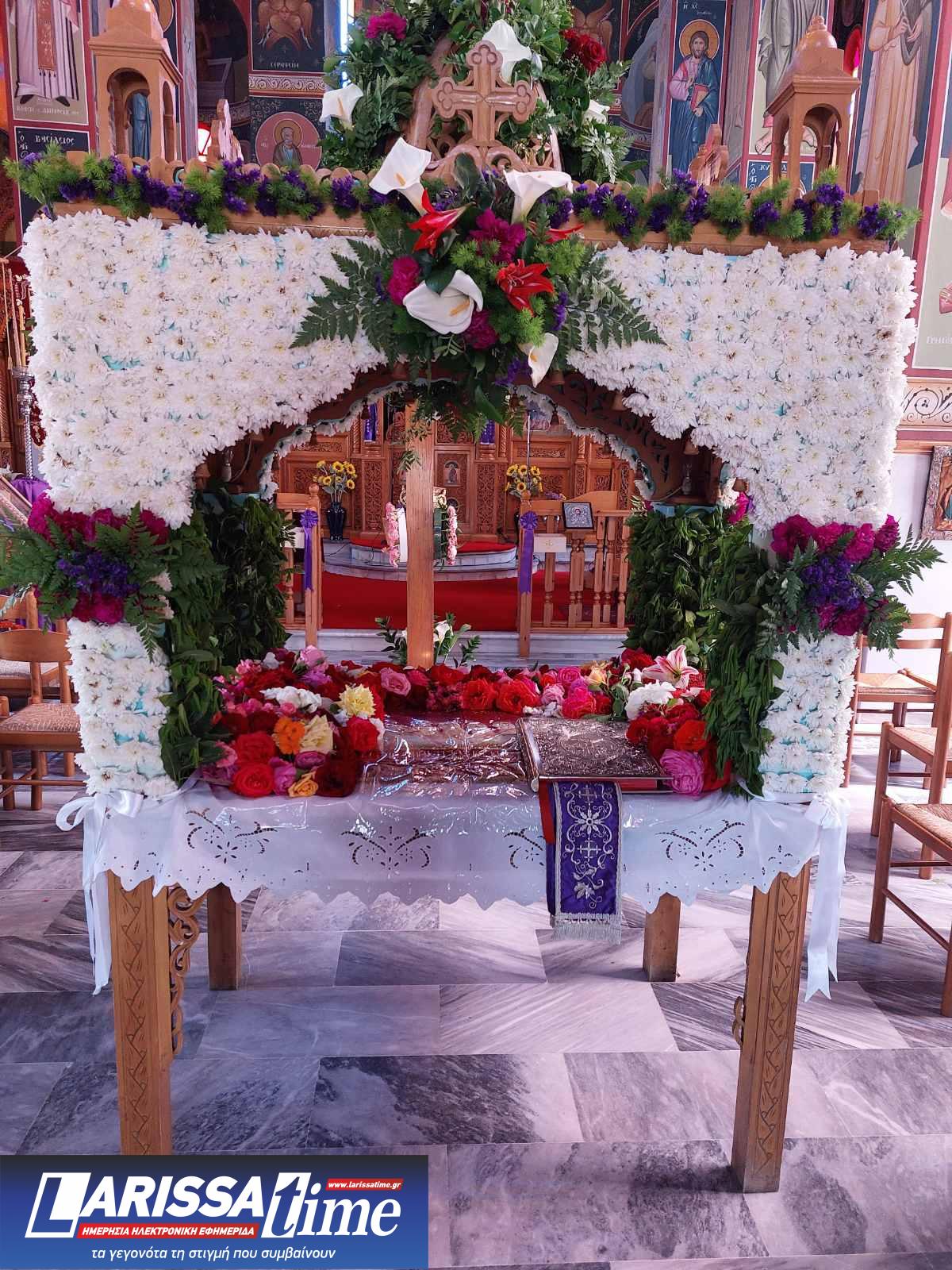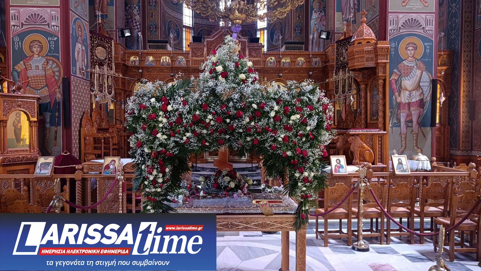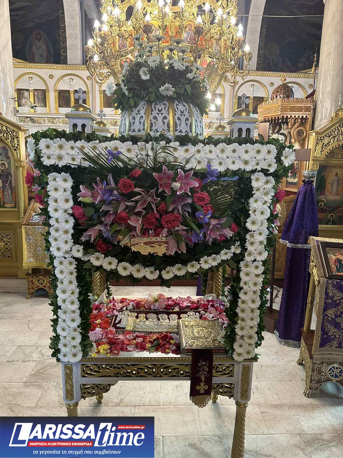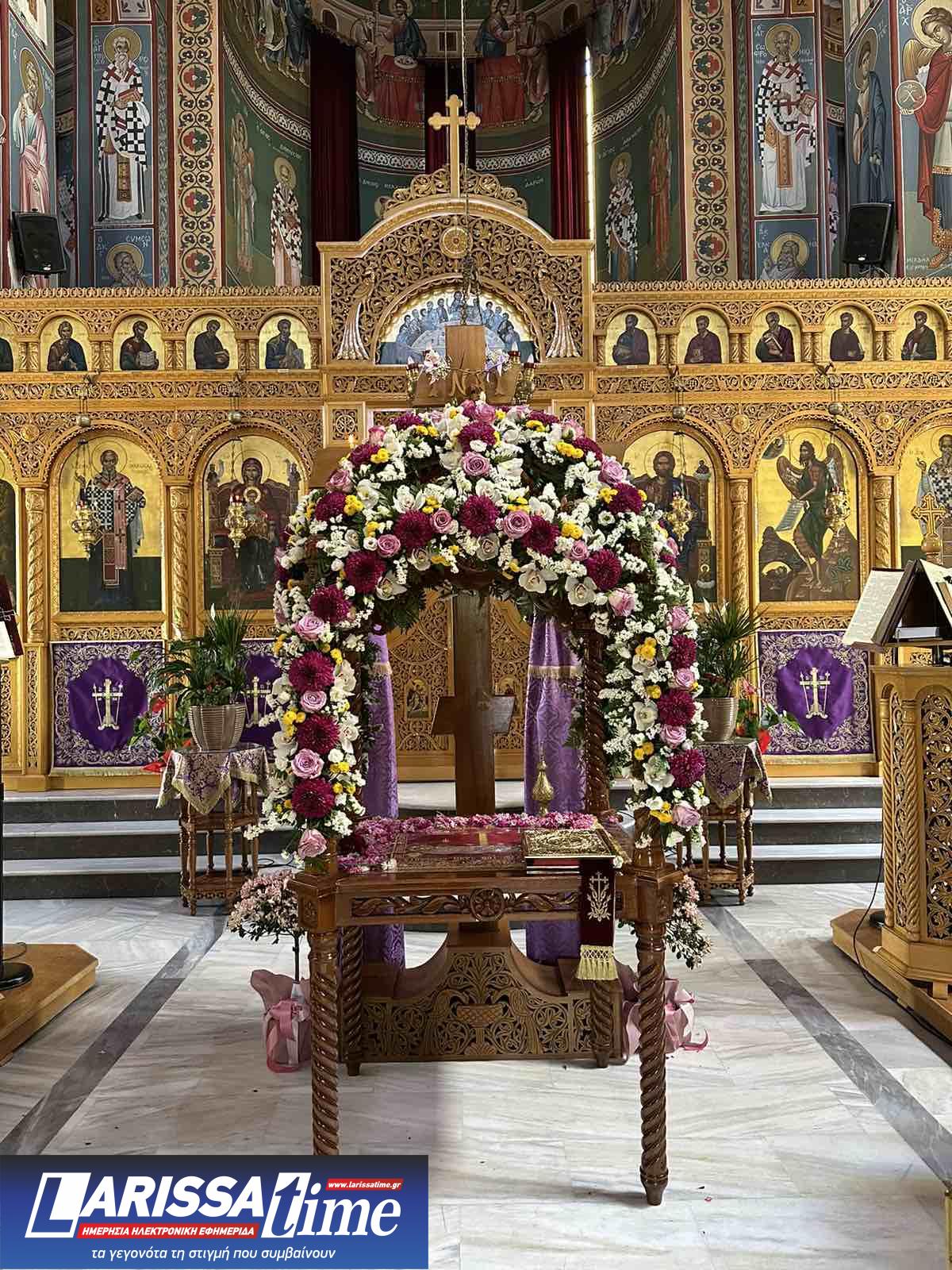 Για ακόμη μία χρονιά, οι Επιτάφιοι στους Ιερούς Ναούς της Λάρισας στολίστηκαν με λουλούδια, τα οποία περιβάλλουν το σώμα του Χριστού.