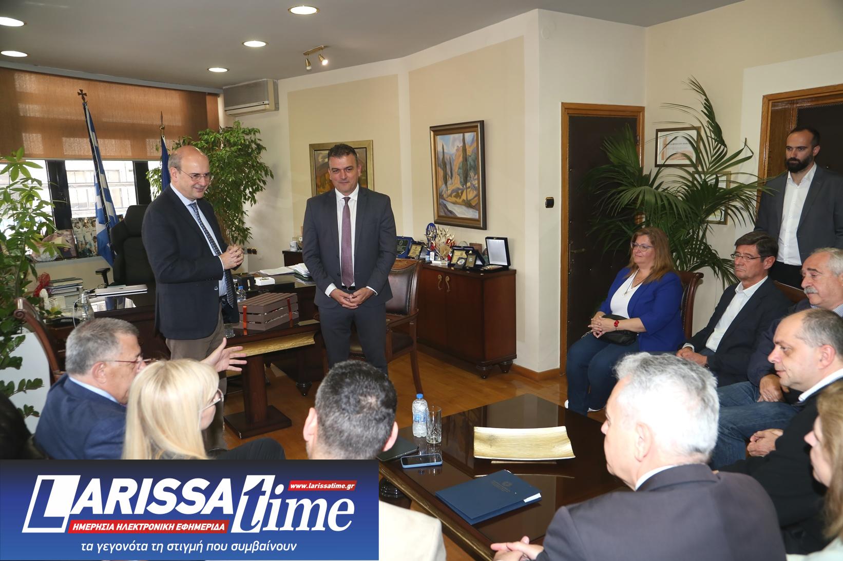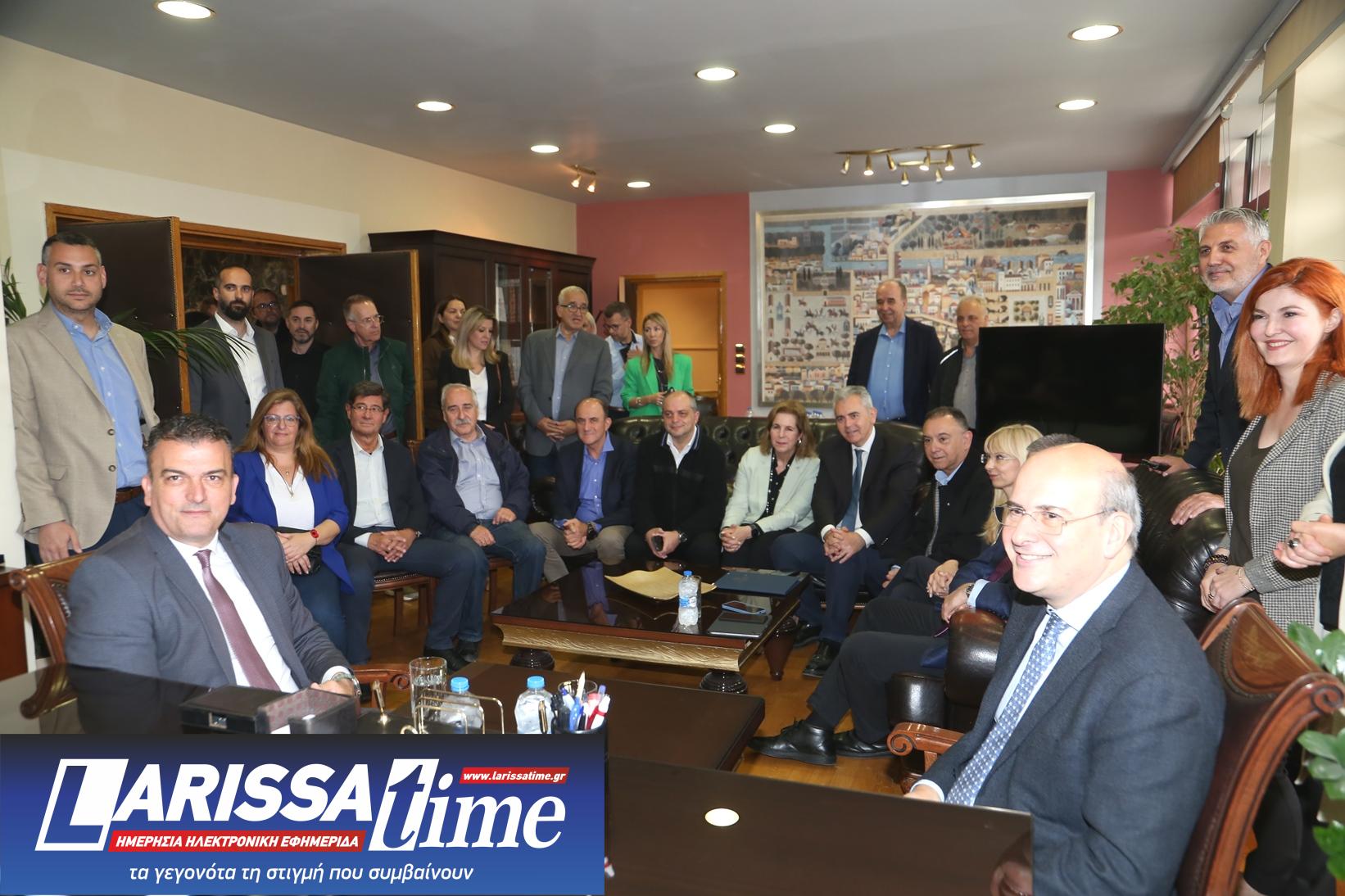 Η συνάντηση πραγματοποιήθηκε στο Δημαρχείο της Λάρισας, παρουσία, μεταξύ άλλων, του Υφυπουργού Υποδομών, κ.Νίκου Ταχιάου, αλλά και της Γενικής Γραμματέα Συντονισμού στην Προεδρεία της Κυβέρνησης, Εύης Δραμαλιώτη.