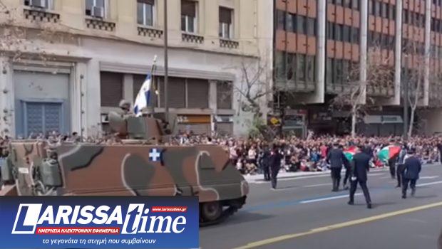 Θυμίζεται ότι ομάδα ατόμων πραγματοποίησε παρέμβαση υπέρ των Παλαιστινίων στη στρατιωτική παρέλαση, με την οποία κορυφώθηκαν οι εορταστικές εκδηλώσεις για την Επέτειο της 25ης Μαρτίου.