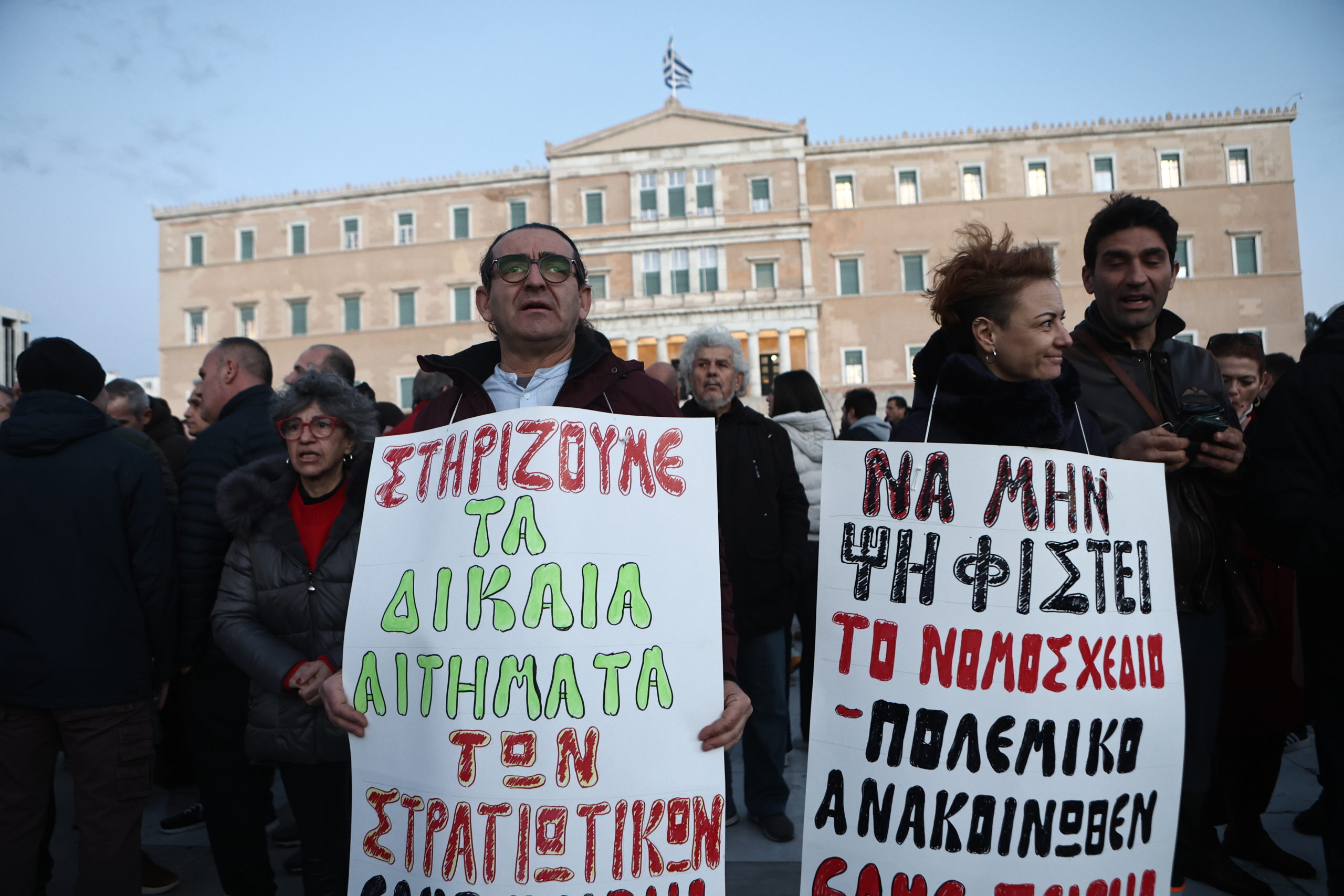 Συγκέντρωση διαμαρτυρίας ενάντια στο νομοσχέδιο για τις Ένοπλες Δυνάμεις βρίσκεται σε εξέλιξη αυτή την ώρα στο Σύνταγμα.