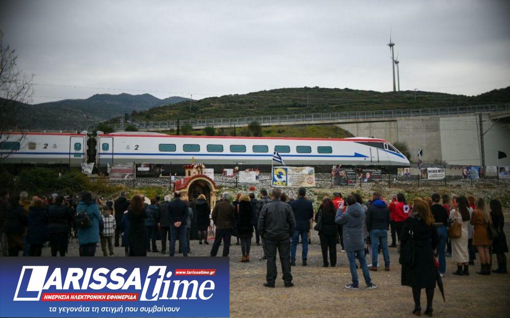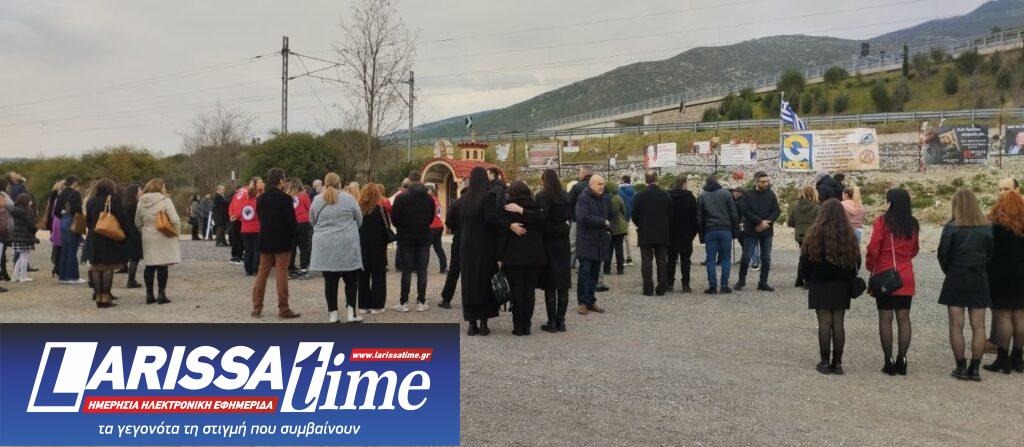 Αμέσως μετά το τέλος τρισαγίου ο Μητροπολίτης Λαρίσης και Τυρνάβου Ιερώνυμος, τόνισε ότι “Είναι μια βαριά μέρα γιατί θυμόμαστε αυτούς τους 57 ανθρώπους που έφυγαν άδικα. Αυτοί οι άνθρωποι είναι στο επίκεντρο των σκέψεων και της προσευχής μας. Κοντά σε αυτό είναι και όλα τα άλλα τα οποία ακούμε αυτές τις ημέρες. Να ξέρετε ότι κάποιον τον τιμάς πολύ με τη σιωπή και την προσευχή. Δεν τον τιμάς με τον χορό. Για άλλη μια φορά η μικροπολιτική έρχεται να καλύψει την ουσιαστική συζήτηση, δηλαδή το πως θα γίνουν οι σιδηρόδρομοι ασφαλείς, δεν χρειάζονται λόγια που κουράζουν, οι ψυχές αυτές θα βρουν δικαίωση μόνο όταν ο σιδηρόδρομος θα είναι ασφαλής και τα πράγματα θα δουλεύουν σωστά. Στον χρόνο επάνω η δική μας συμβουλή είναι για να μην μείνουν οι νεκροί αυτοί μια ακόμη ανάμνηση ενός θλιβερού δυστυχήματος, θα πρέπει όλοι μαζί να δουλέψουμε ώστε να πάμε συνολικά τον τόπο μπροστά. Ο Θεός να τους αναπαύει”.