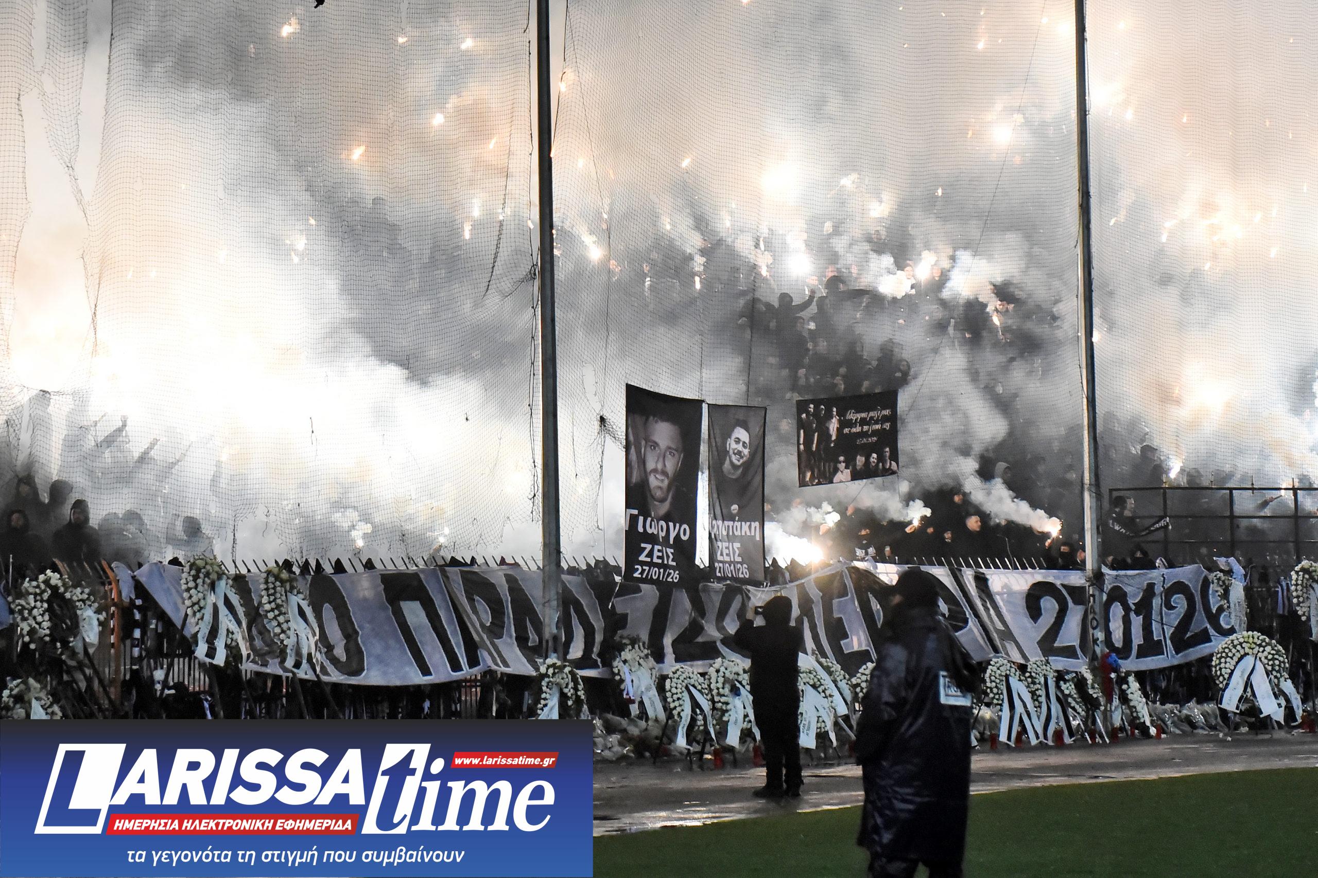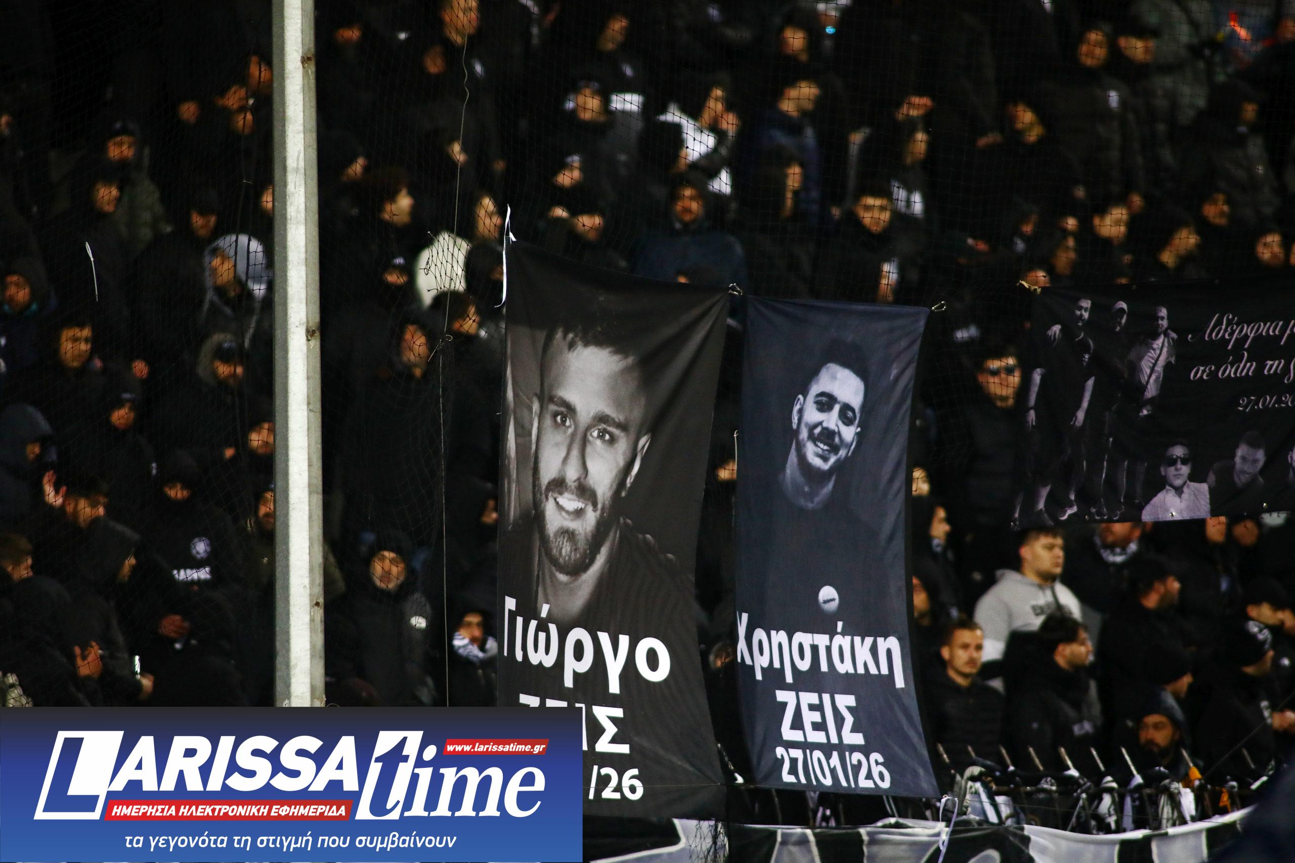 Οι φίλοι του ΠΑΟΚ δεν σταμάτησαν να φωνάζουν το “αδέρφια ζείτε, εσείς μας οδηγείτε”, μέχρι τη στιγμή που τηρήθηκε ενός λεπτού σιγή.