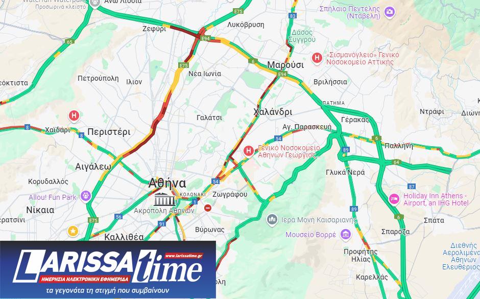 Προβλήματα καταγράφοντας στην Λεωφόρο Κηφισίας, στην Βασιλίσσης Σοφίας αλλά και στην Κατεχάκη στο ρεύμα από Ηλιούπολη.