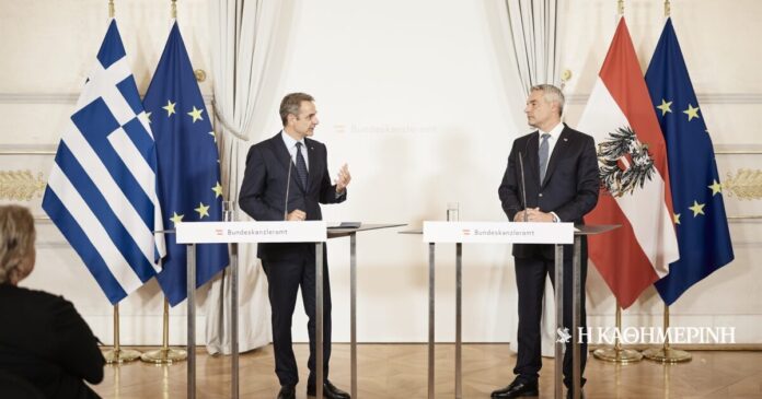 Τέσσερα σαφή μηνύματα προς το Βερολίνο και τους «σκληρούς» του μεταναστευτικού στην Ε.Ε. έστειλε χθες ο πρωθυπουργός Κυριάκος Μητσοτάκης από τη Βιέννη, όπου βρέθηκε στο πλαίσιο διμερούς συνάντησής του με τον καγκελάριο της Αυστρίας, Καρλ Νεχάμερ.
