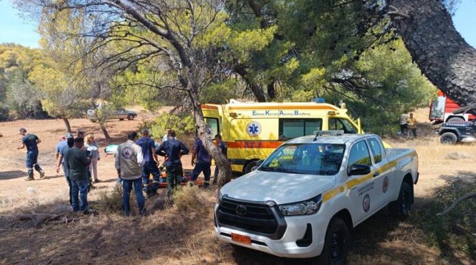 Σύμφωνα με την Πυροπροστασία Δασών Λευρεωτικής ο άνδρας απεγκλωβίστηκε τραυματισμένος έχοντας τις αισθήσεις του.