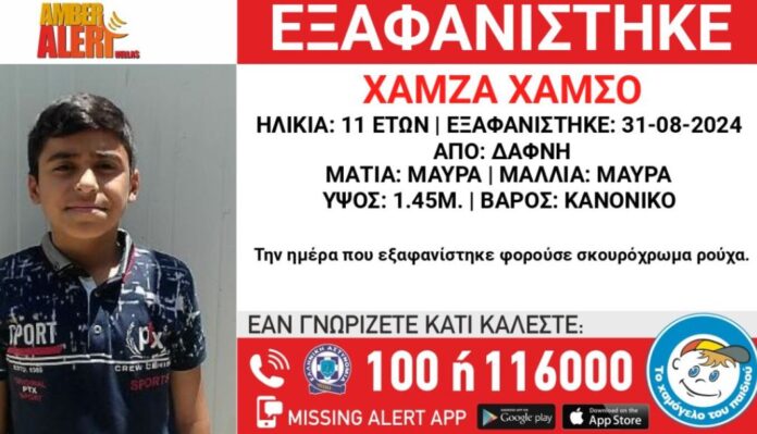 Συναγερμός σήμανε στις Αρχές μετά την εξαφάνιση του 11χρονου Xάμσο Χάμζα, από χώρο παιδικής προστασίας στη Δάφνη.
