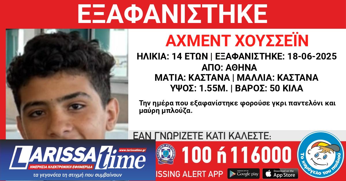 Τα ίχνη του Αχμέντ Χουσσεΐν, αιγυπτιακής καταγωγής, χάθηκαν στις 18/06/2025, στις 19:20 το απόγευμα, από χώρο φιλοξενίας ασυνόδευτων ανηλίκων στην Αθήνα.