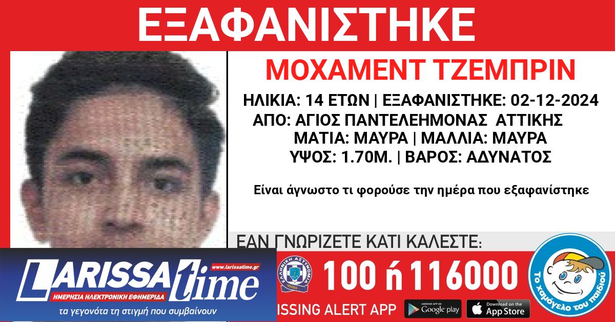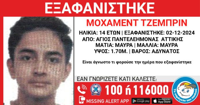 Τα ίχνη του 14χρονου Μοχάμεντ Τζεμπρίν (Mohammed Jebreen), Παλαιστινιακής καταγωγής, χάθηκαν στις 02/12/2024 πρωινές ώρες.