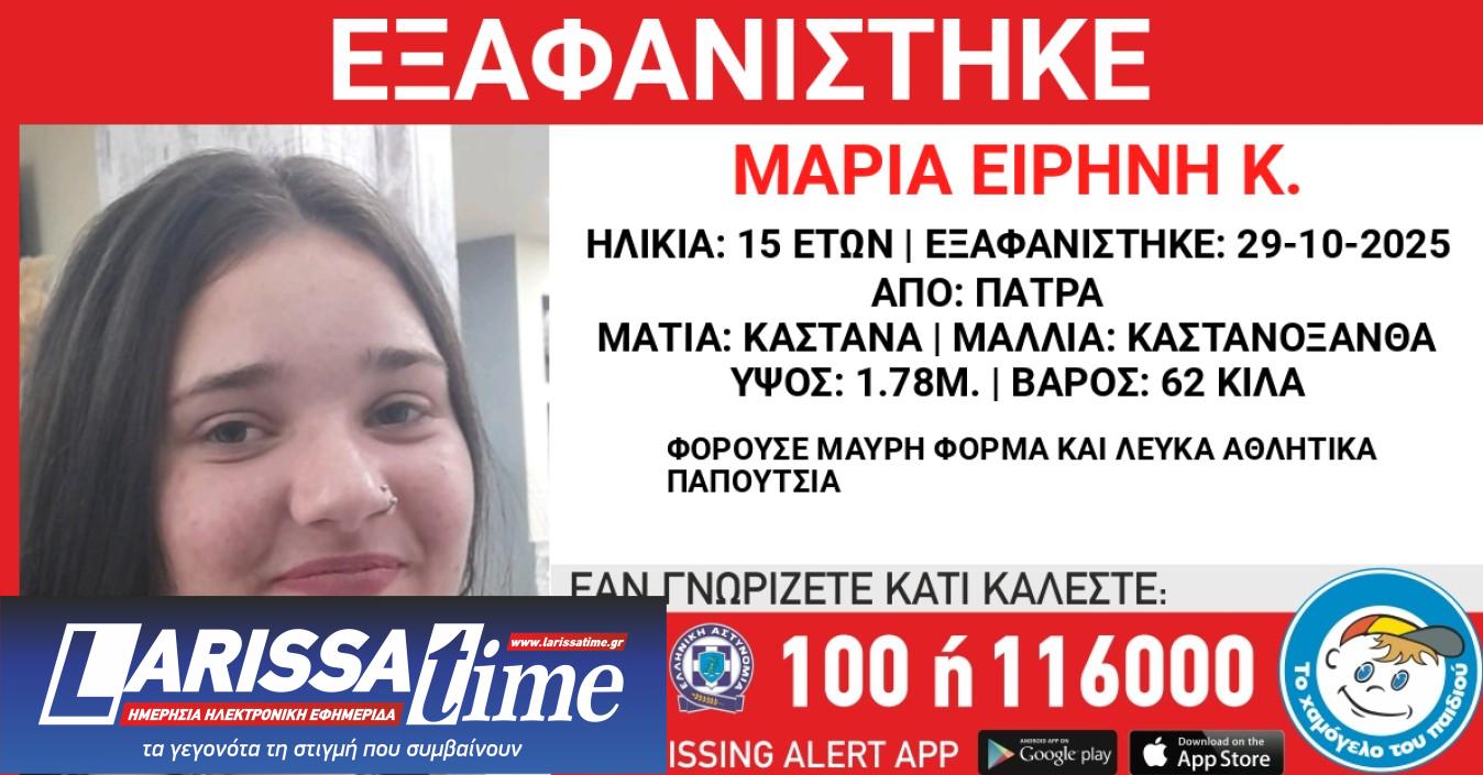 Στην ανακοίνωση για την εξαφάνιση, το «Χαμόγελο του Παιδιού» αναφέρει ότι στις 29 Οκτωβρίου στις 8:30 το πρωί, τα ίχνη της 15χρονης Μαρίας Ειρήνης Κ. από την Πάτρα χάθηκαν.