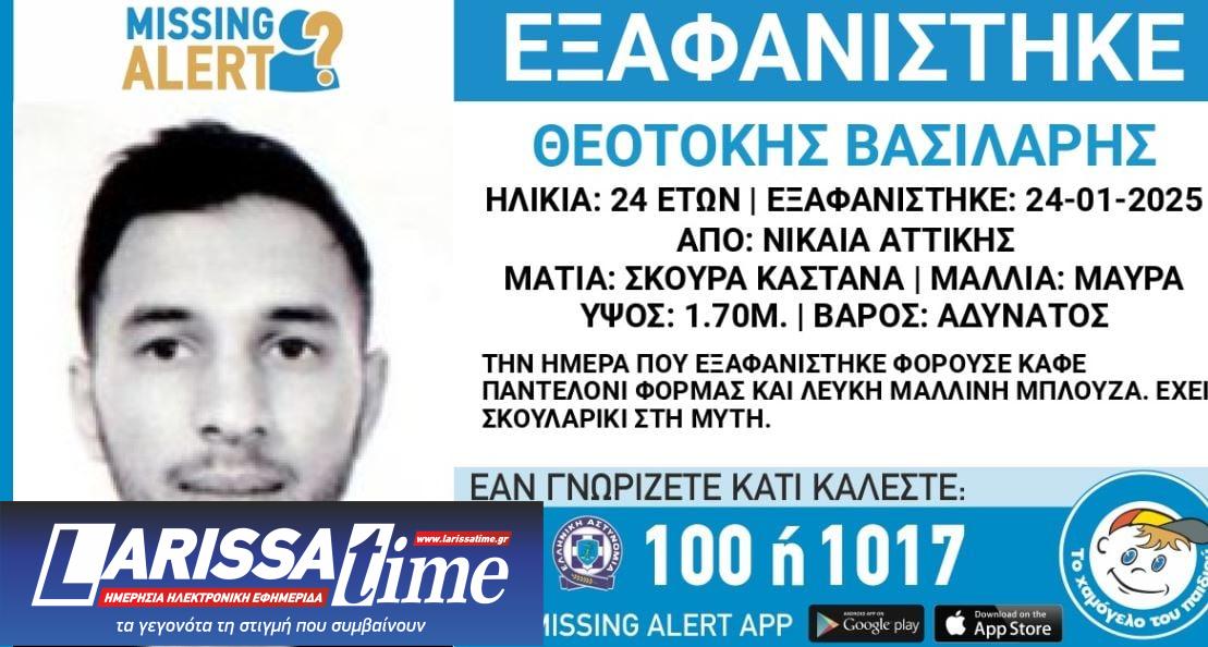 Συναγερμός έχει σημάνει στις αρμόδιες αρχές για την εξαφάνιση ενός 24χρονου από την περιοχή της Νίκαιας, στην Αττική.