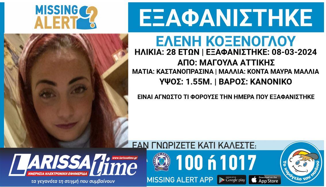 Συναγερμός έχει σημάνει στις Αρχές για την εξαφάνιση 28χρονης από τη Μαγούλα Αττικής.