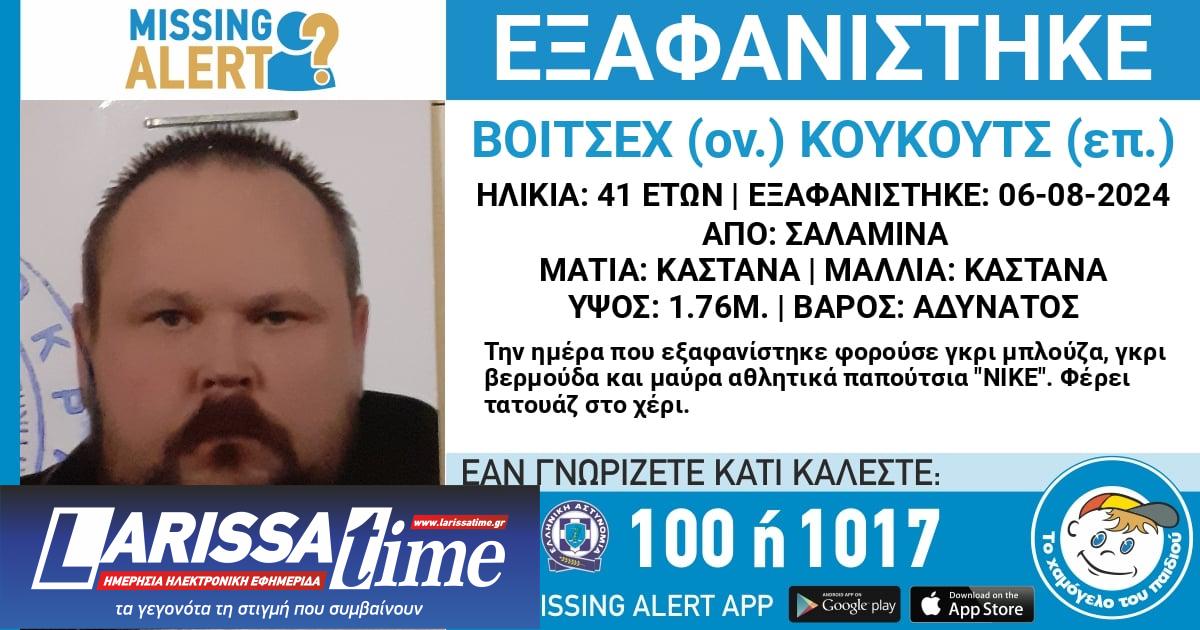 Συναγερμός έχει σημάνει στην Σαλαμίνα για την εξαφάνιση του 41χρονου, πολωνικής καταγωγής, Κούκουτς (επ.) Βόιτσεχ (ον.), τις απογευματινές ώρες της 6ης Αυγούστου 2024.