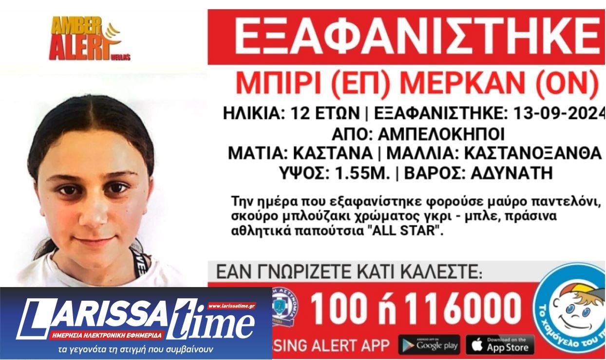 Συναγερμός έχει σημάνει στους Αμπελόκηπους, έπειτα από την εξαφάνιση της 12χρονης Μέρκαν Μπιρί, η οποία αγνοείται από σήμερα (13/09) το πρωί.