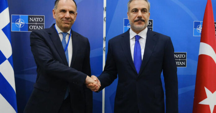Ολοκληρώθηκε, προ ολίγου, συνάντηση του υπουργού Εξωτερικών, Γιώργου Γεραπετρίτη, με τον Τούρκο ομόλογό του, Χακάν Φιντάν, στο περιθώριο της συνόδου υπουργών Εξωτερικών του ΝΑΤΟ.
