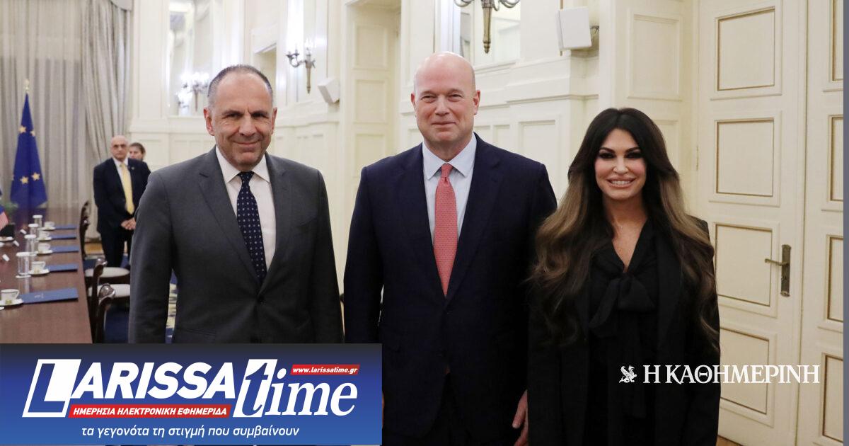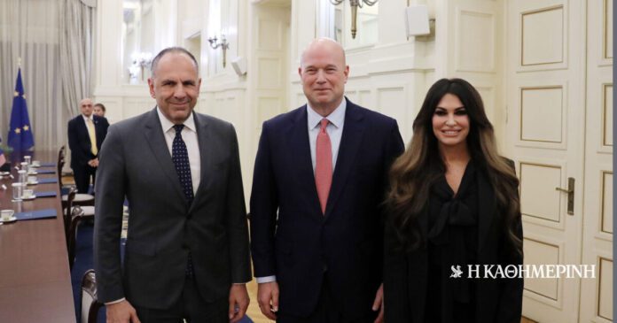 Στη συνάντηση παρευρέθηκε και η πρέσβης των ΗΠΑ στην Ελλάδα Κίμπερλι Γκίλφοϊλ.