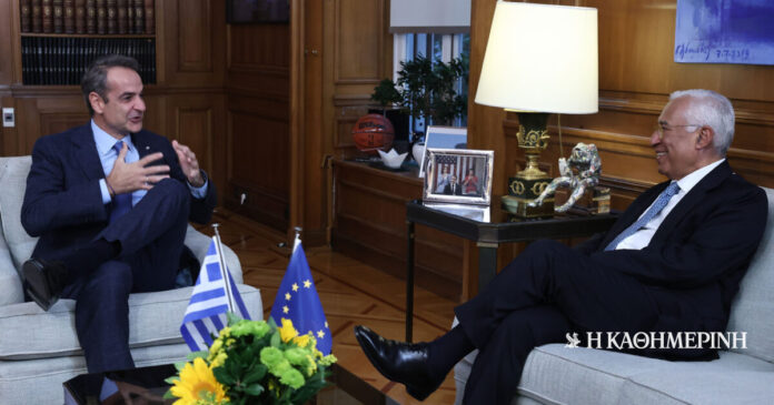 Από την πλευρά του ο Αντόνιο Κόστα ευχαρίστησε τον πρωθυπουργό για τη στήριξή του. «Υπολογίζω στη στήριξή σου αυτά τα 2,5 χρόνια. Ζούμε σε καιρούς μεγάλων προκλήσεων και πρέπει να μείνουμε ενωμένοι. Υπολογίζουμε σε εσάς», σημείωσε χαρακτηριστικά.