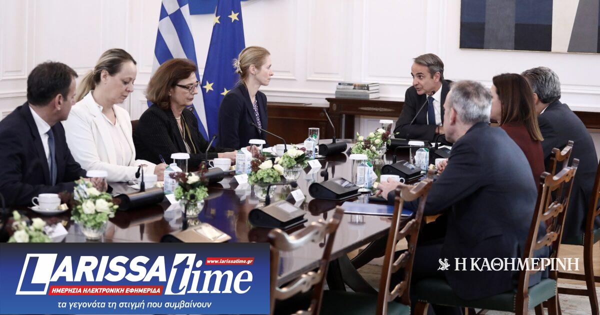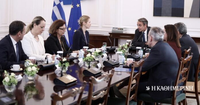 Οι διεθνείς και περιφερειακές εξελίξεις με επίκεντρο την Ουκρανία, τα Δυτικά Βαλκάνια, τη Μέση Ανατολή και την Ανατολική Μεσόγειο συζητήθηκαν κατά τη συνάντηση που είχαν το μεσημέρι στο Μέγαρο Μαξίμου ο πρωθυπουργός Κυριάκος Μητσοτάκης με την ύπατη εκπρόσωπο της Ε.Ε. για Θέματα Εξωτερικής Πολιτικής και Πολιτικής Ασφάλειας και αντιπρόεδρο της Ευρωπαϊκής Επιτροπής, Κάγια Κάλας.
