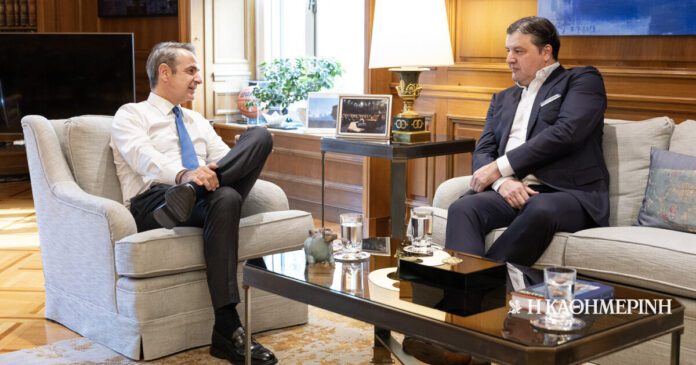 Ο πρωθυπουργός, Κυριάκος Μητσοτάκης, συναντήθηκε σήμερα στο Μέγαρο Μαξίμου με τον πρόεδρο της Euroleague Basketball, Ντέγιαν Μποντιρόγκα.