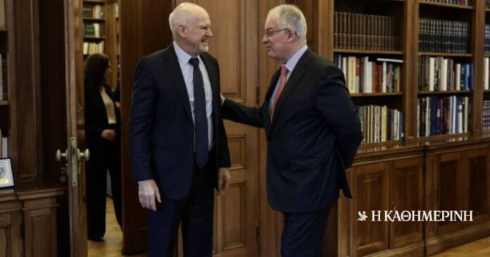 Ο Πρόεδρος της Δημοκρατίας Κωνσταντίνος Τασούλας συνάντησε σήμερα στο Προεδρικό Μέγαρο τον πρώην πρωθυπουργό Γιώργο Παπανδρέου.