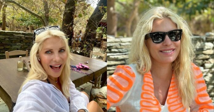 Η Ελένη Μενεγάκη συνεχίζει τις διακοπές της στην Άνδρο, καθώς και τις αναρτήσεις της στο Instagram από το νησί.