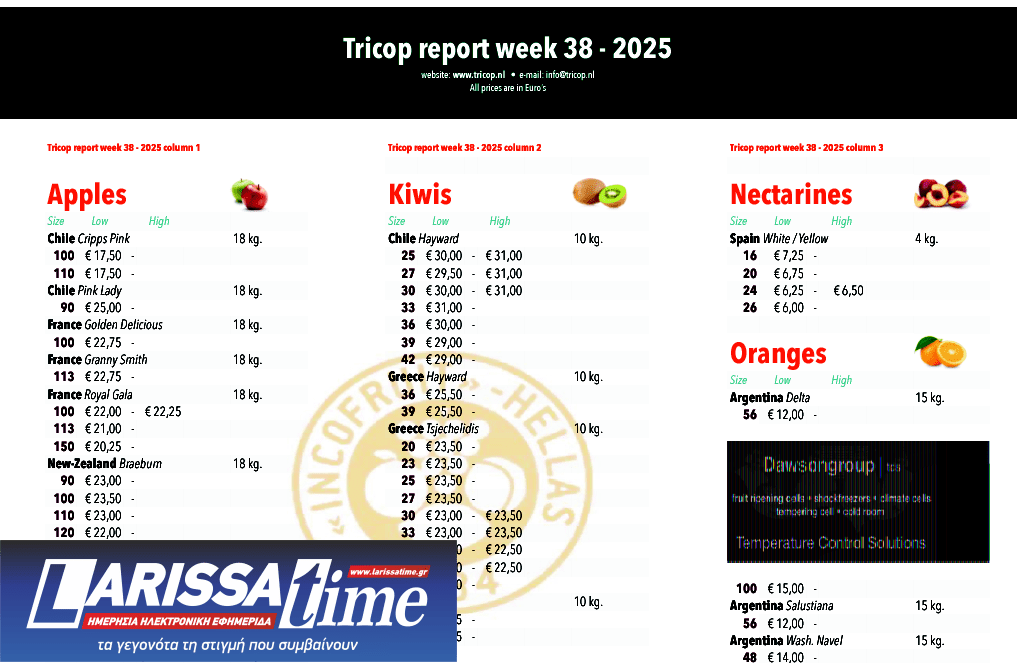 «Αναγκαία είναι η εφαρμογή της Εθνικής Νομοθεσίας με τήρηση της ημερομηνίας έναρξης συγκομιδής την 15η Οκτωβρίου της κύριας ποικιλίας Hayward» επισημαίνει ο ειδικός σύμβουλος, Γιώργος Πολυχρονάκης.