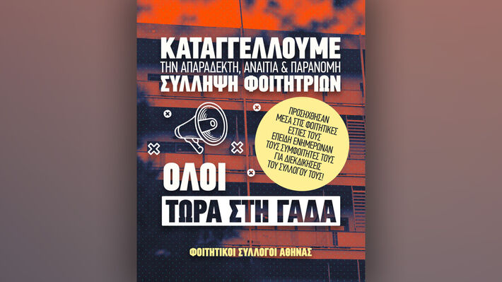«Καταγγέλλουμε την αδιανόητη σύλληψη τριών φοιτητριών, οικότροφων στη Φοιτητική Εστία του Πανεπιστημίου της Αθήνας, εκ των οποίων η μία είναι η πρόεδρος του Συλλόγου Οικότροφων και οι άλλες δύο εκλεγμένα μέλη στα διοικητικά συμβούλια φοιτητικών συλλόγων», αναφέρει σε ανακοίνωση της το Γραφείο Τύπου του ΚΣ της ΚΝΕ.